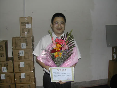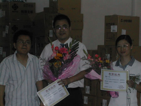 (圖四)熊濤經(jīng)理與“銷售標(biāo)兵”、“優(yōu)秀員工”合影留念