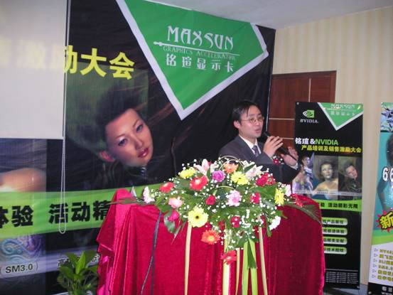 銘瑄產品經理黎強對NVIDIA的成長歷程,先進的顯示技術,產品的市場走勢做了詳細介紹。對于2005年度銘瑄攜手NVIDIA在市場推廣方面所作的努力表示肯定,并對雙方繼續加強合作表示了積極展望。
