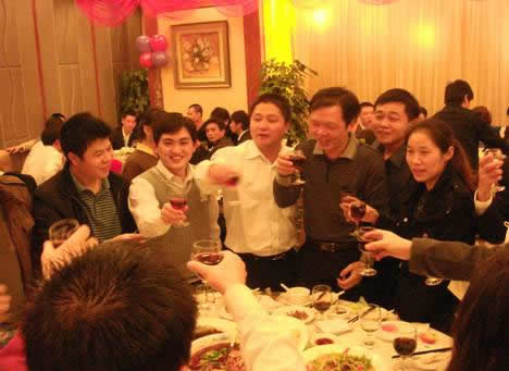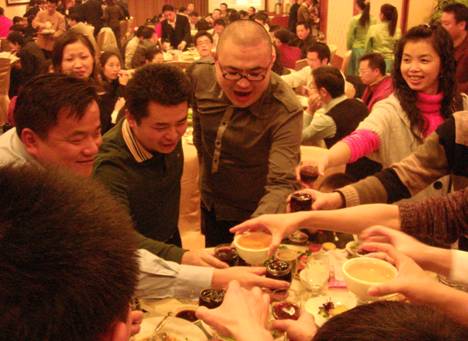 晚會(huì)的第二波高潮開(kāi)始了,孫武源先生和劉險(xiǎn)峰先生逐一為各代理商敬酒。