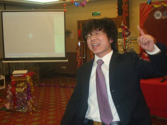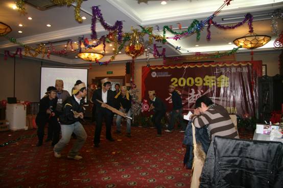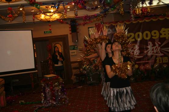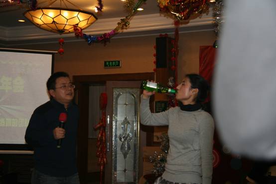 在大家稍稍填飽肚子以后,晚會在愉悅的氣氛中展開,首先孫副總對過去的成績和不足發(fā)表講話。