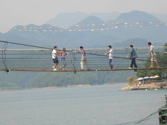 我們面向大山,腳下臨水,感受水天一色的自然風(fēng)光,體驗“狀元橋”帶來的驚險。連我們上分最瘦弱的女生都不甘示弱,要來體驗一把。