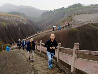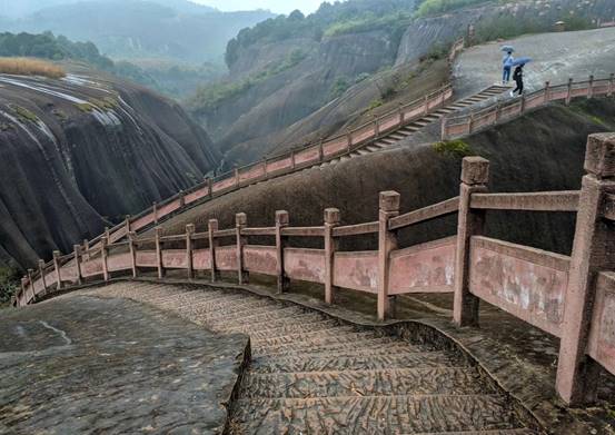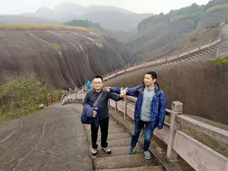 在微雨的郴州我們迎來十二月的第一天。空氣濕潤,氣溫微涼,讓人神清氣爽。乘坐大巴車來到古代著名旅行達人徐霞客打卡的飛天山。他曾贊嘆飛天山“無寸土不麗,無一山不奇”,境區(qū)山頂相連,溝壑縱橫,山環(huán)水繞,寨坦錯落,精巧處如精雕細琢,巧奪天工,宏偉處如橫空出世,壯志凌云。
