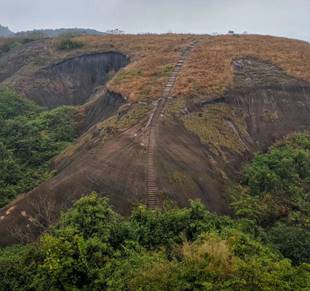 雖然以己經是12月份入冬時節(jié),飛天山景色更似深秋。歷經打磨的臺階,奇特的丹霞地貌,手中的一顆狗尾巴草,雨水浸潤的落葉。