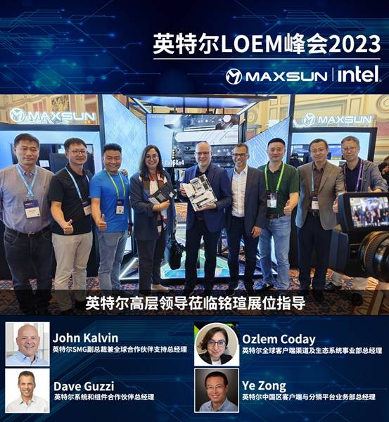 在銘瑄展位上,銘瑄以其展示的獨特創(chuàng)新產(chǎn)品吸引了眾多來賓的目光。其中由英特爾SMG副總裁兼全球合作伙伴支持總經(jīng)理 John Kalvin、英特爾系統(tǒng)和組件合作伙伴總經(jīng)理 Dave Guzzi、英特爾全球客戶端渠道及生態(tài)系統(tǒng)事業(yè)部總經(jīng)理 Ozlem Coday、英特爾中國區(qū)客戶端與分銷平臺業(yè)務(wù)部總經(jīng)理 Ye Zong等核心嘉賓帶領(lǐng)的指導(dǎo)團(tuán)隊蒞臨銘瑄展位指導(dǎo),并對銘瑄表示了高度認(rèn)可和贊譽(yù)。